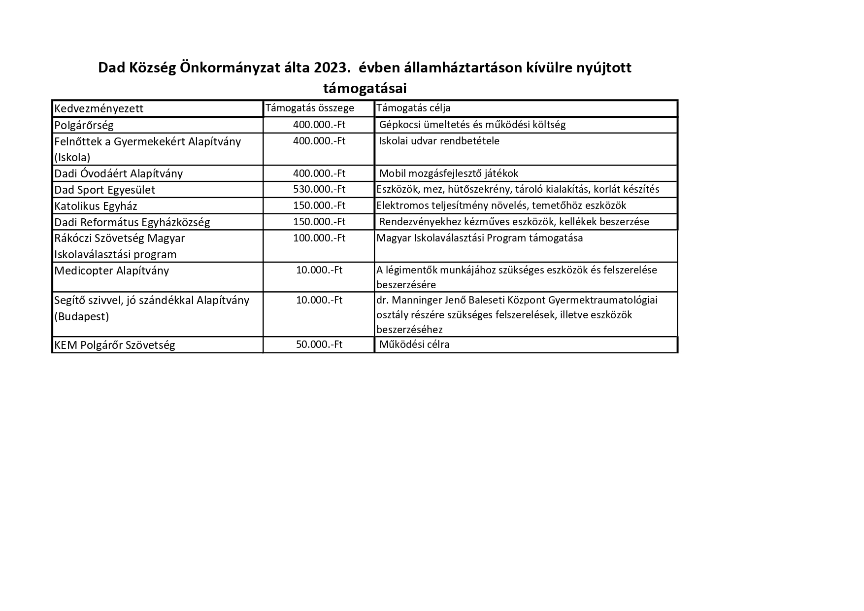 Támogatások 2023.